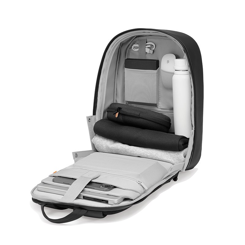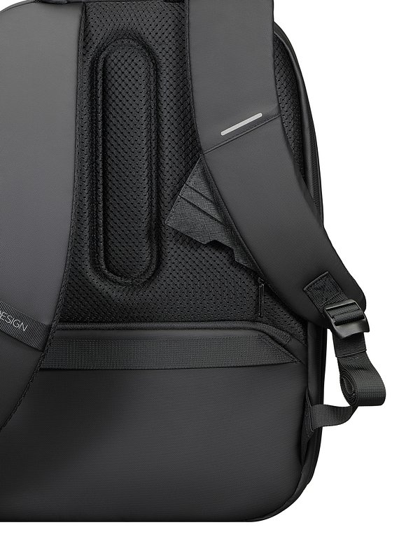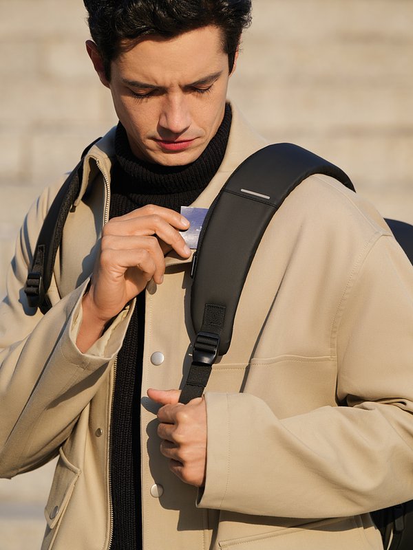 Experience modern design and enhanced security with Bobby Edge. Designed with an anti-theft design and a self-locking metal zipper puller, this backpack keeps your belongings secure. Its lightweight yet durable construction, along with a water-repellent exterior and a waterproof zipper, ensures protection from the elements. Enjoy smart interior organization for easy access to essentials. The addition of a discreet back pocket with RFID protection and a concealed gadget pocket enhances comfort and security during your daily adventures. Bobby Edge combines modern design with advanced security features, offering a stylish and protected journey for the modern explorer. The backpack is water-resistant and made from recycled materials. With an AWARE™ tracer validating the genuine use of recycled materials. Recycled content 14%. Registered design®