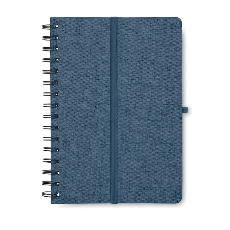 Libreta A5 de anillas con tapa dura de RPET 600D con función de soporte para smartphone. Doble hilo. 160 páginas rayadas (80 hojas). papel reciclado de 70 g/m². Banda elástica de cierre.