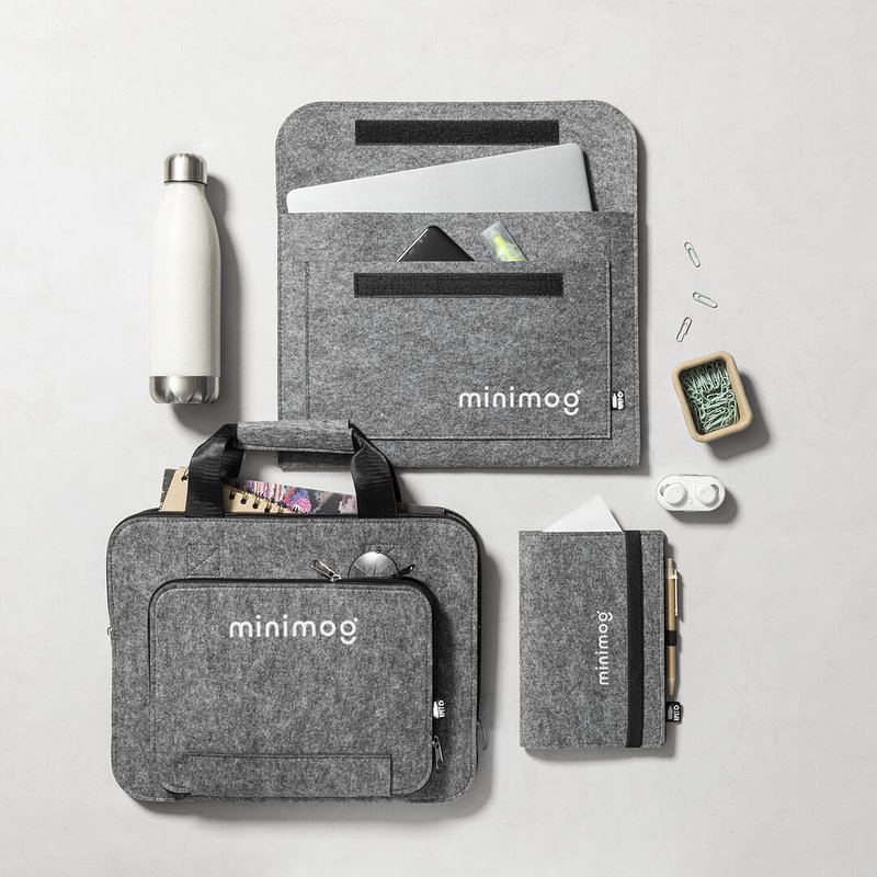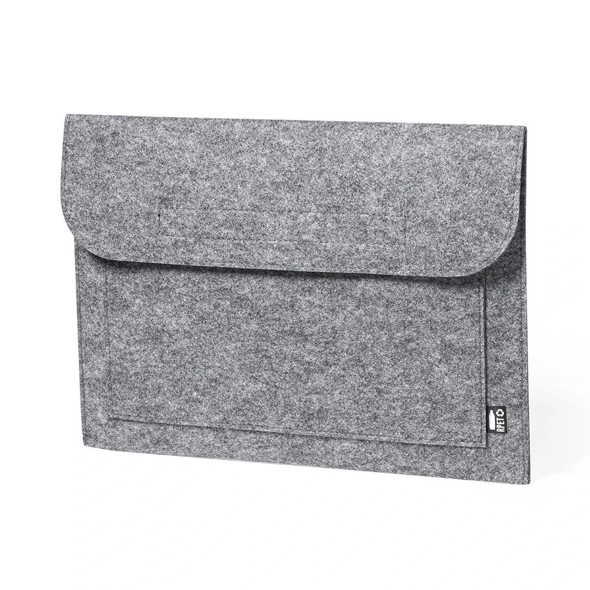 Laptop case from the nature line made of durable recycled RPET felt, the product of combining the process of recycling plastic materials with the age-old technique of felt manufacturing, resulting in a trendy eco-material that is not only recycled, but also recyclable. Flap with velcro closures and a front pocket, with an RPET distinctive on the external label.