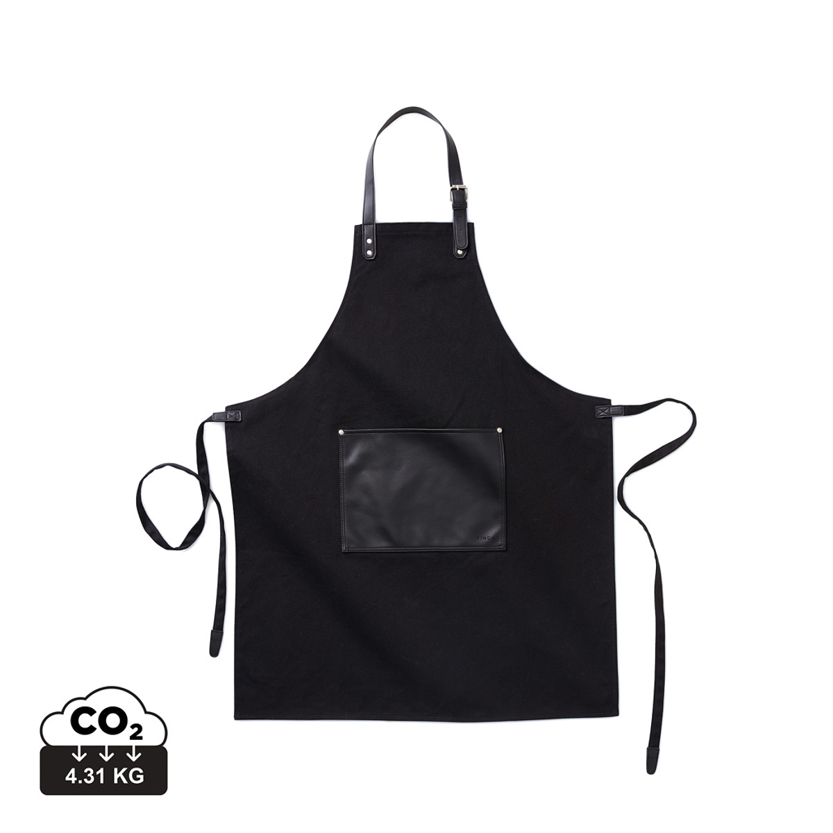 Elegant and classic apron made from thick cotton canvas with subtle PU details. Adjustable buckle closure at the top and large pocket on the front. An apron with a long lifespan that becomes more beautiful over time.