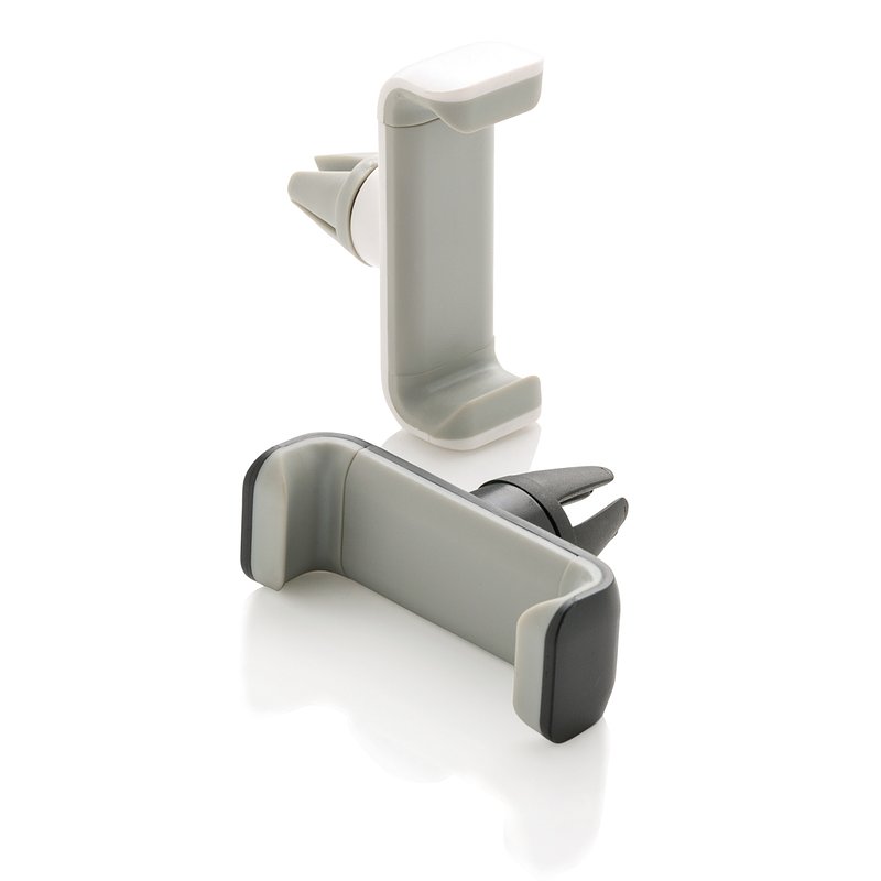 Soporte universal giratorio para el coche de 360 grados para sostener tu teléfono móvil al conducir. Simplemente haz clic en tu respiradero y coloca tu teléfono móvil (hasta 6") en el soporte. Hecho de ABS resistente al calor y de silicio fuerte para hacer el artículo duradero y evitar que se desprenda mientras conduces. Con mecanismo interior de acero inoxidable para asegurar que tu teléfono permanezca fijo y bien sujeto.