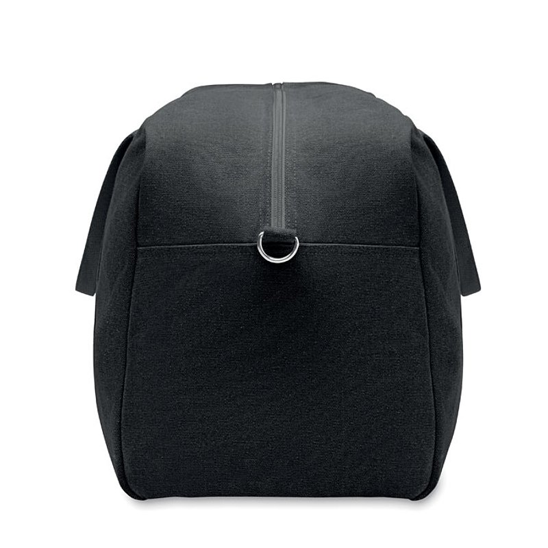 Bolsa de viaje en tejido reciclado de 450 gr/m² (60% algodón reciclado y 40% poliéster reciclado) con correa de algodón ajustable y desmontable.