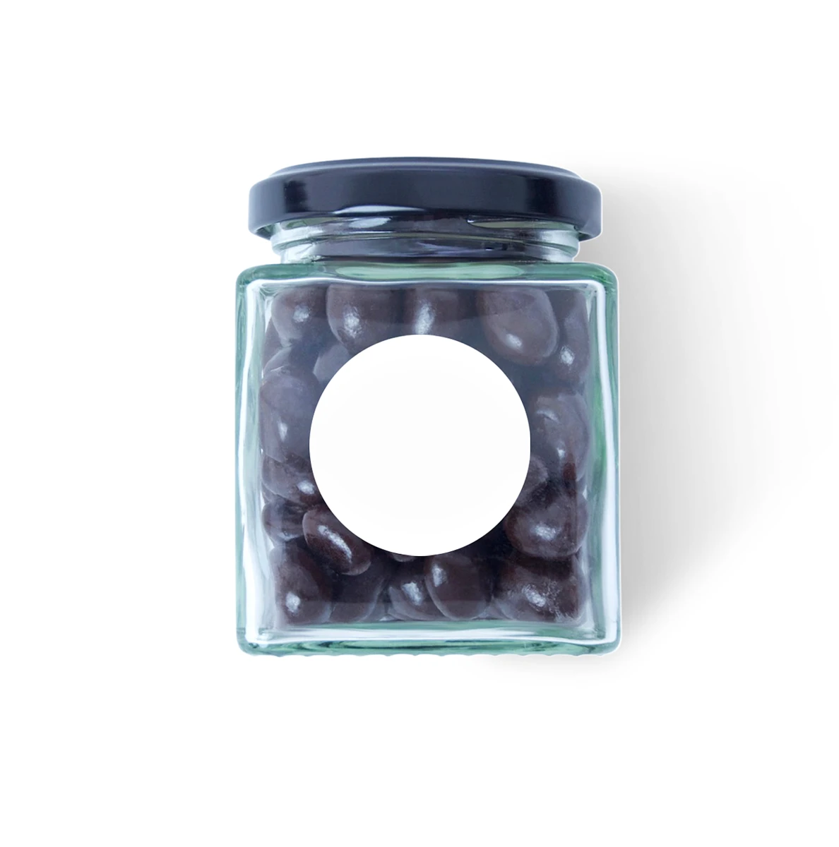 Tarro vidrio cacahuetes de chocolate 212ml personalizable con etiqueta de alta calidad.