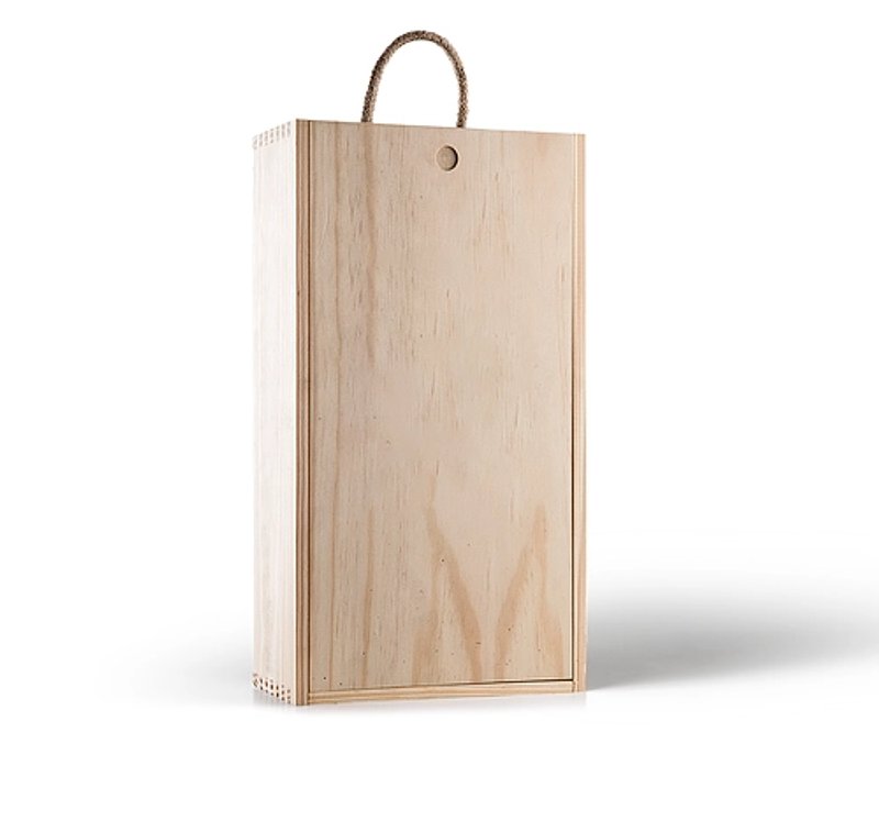Caja regalo de madera de pino, con cordón de agarre, impresa con tu logotipo o diseño