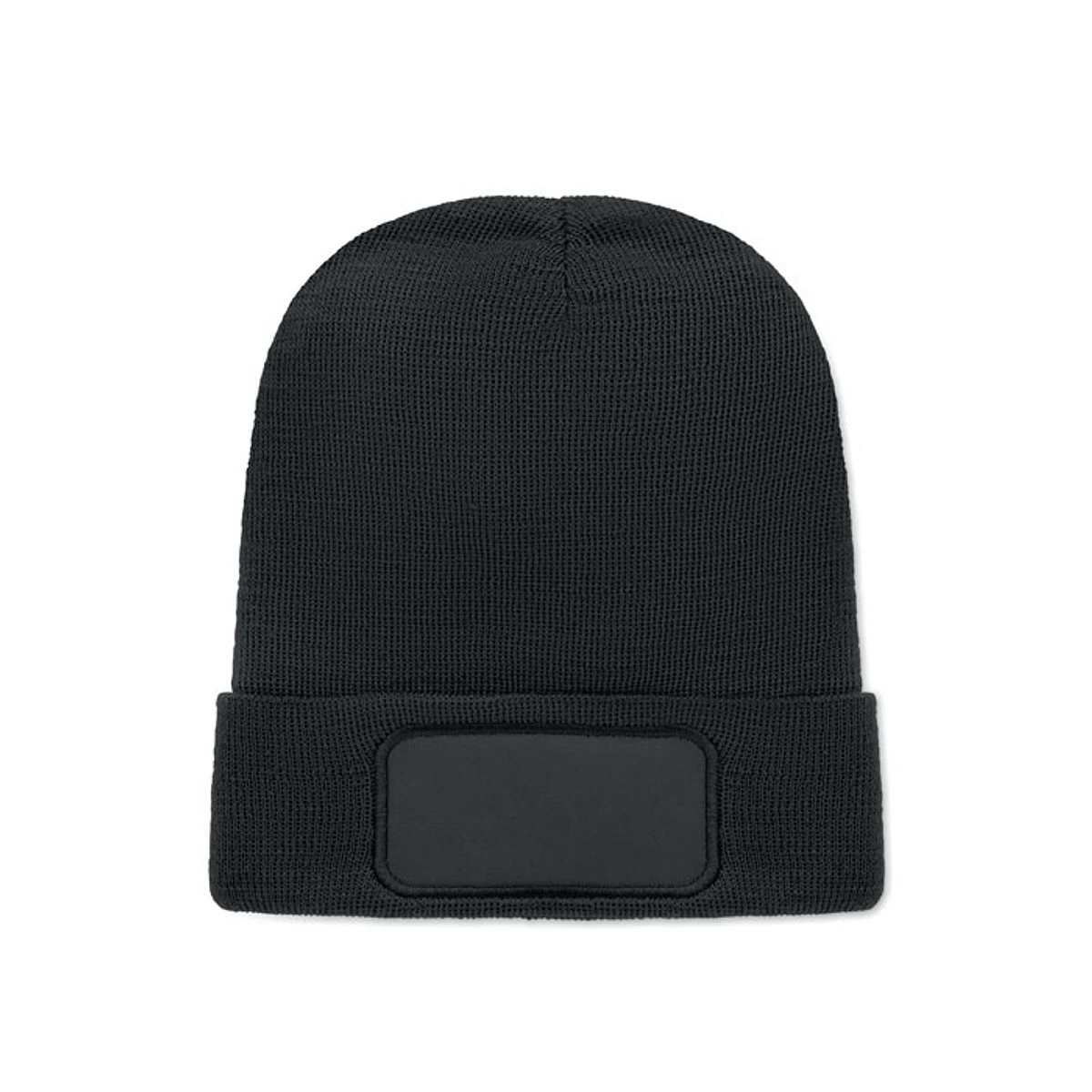 Gorro de punto unisex de suave poliéster RPET elástico con puño y parche.