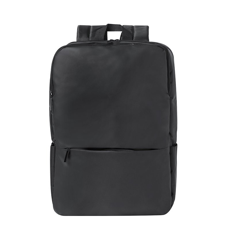 Mochila confeccionada en elegante polipiel De diseño urbano, que incorpora un bolsillo principal acolchado con doble cierre para tablet de hasta 10 pulgadas y portátil de hasta 15 pulgadas, así como un bolsillo segundario y un bolsillo frontal con cremallera. Las cintas de hombros y la espalda son acolchadas, ajustables y cuentan con una tela transpirable para disipar el calor. Además, incluye un accesorio para ajustarse al trolley y una práctica asa en la parte superior. Presentada en una bolsa individual reciclada.