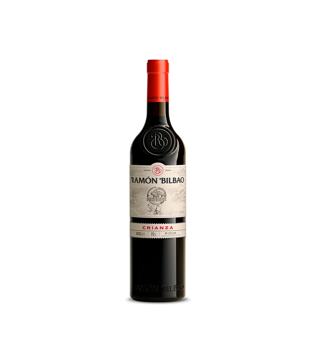 El Vino Ramón Bilbao crianza es un monovarietal de Tempranillo, frutal, equilibrado y afinado. Posee una crianza de 14 meses en barricas de roble americano y después de ello se mantiene durante 8 meses en botella hasta que finalmente puede degustarlo un consumidor.