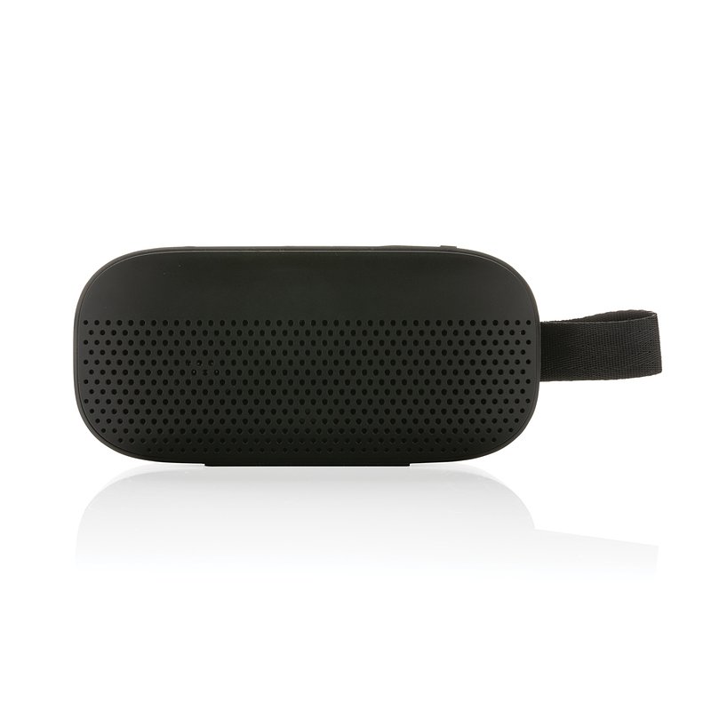 Altavoz inalámbrico de 5W fabricado con ABS reciclado certificado RCS (Recycled Claim Standard). Contenido reciclado total: 36% basado en el peso total del artículo. La certificación RCS garantiza una cadena de suministro completamente certificada de los materiales reciclados. El altavoz está equipado con una batería de 1200 mAh para garantizar hasta 6 horas de tiempo de reproducción y BT5.3 para una conexión fluida y un sonido claro. Rango de conexión de hasta 10 metros. Con micrófono para contestar llamadas. Presentado en caja de mezcla FSC®. Incluye cable de carga de TPE reciclado certificado por RCS. Artículo y accesorios 100% libres de PVC. IPX5 resistente al agua.