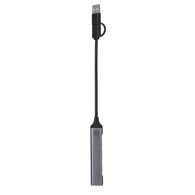 Puerto USB fabricado en Aluminio Reciclado. Con conexión dual USB/Tipo C y 4 puertos: 1 conexión Tipo C 3.0 y 3 puertos USB. Con distintivo Aluminio Reciclado. El aluminio reciclado es un material con posibilidades de reciclaje casi infinitas, sin perder sus propiedades originales y consumiendo menos energía en este proceso. Certificación GRS (Global Recycled Standard / Estándar de Reciclaje Global,NULL), que garantiza el origen reciclado del material usado para fabricar el producto.