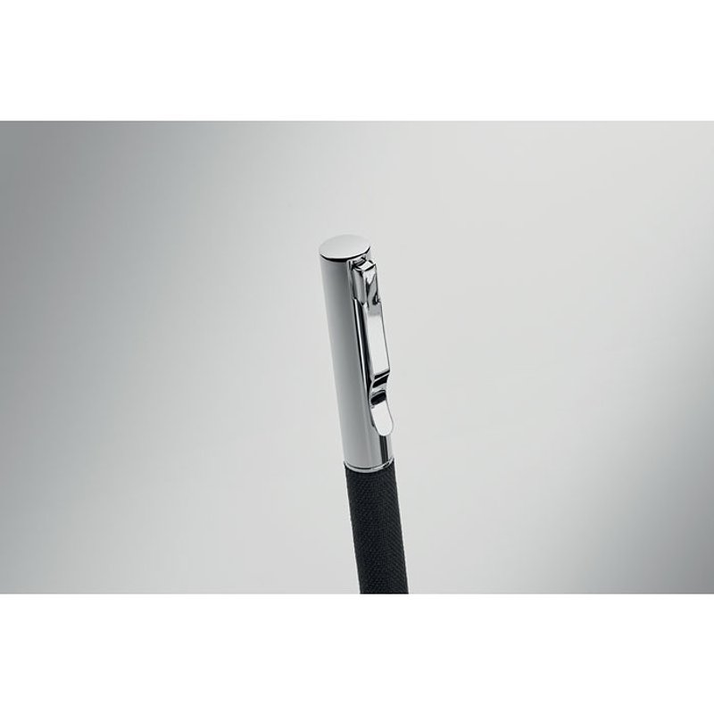 Set de regalo de 2 piezas en caja de regalo. Incluye bolígrafo metálico con detalle de poliéster RPET y llavero de poliéster RPET. Tinta azul.