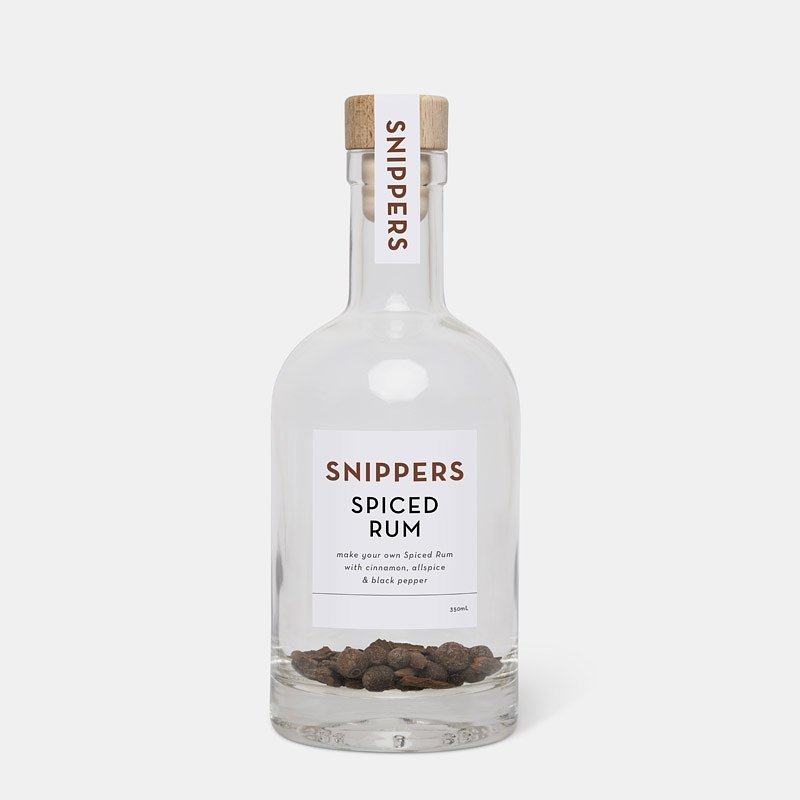 Colección SNIPPERS Botanicals. - La botella está rellena con una selección de especias: canela, pimienta negra y pimientade Jamaica - Crearás tu propio Ron Especiado en 24h. - 3 pasos muy sencillos: 1. Añade Ron 2. Espera 24h. 3. Filtra y disfruta. Capacidad 350ml.