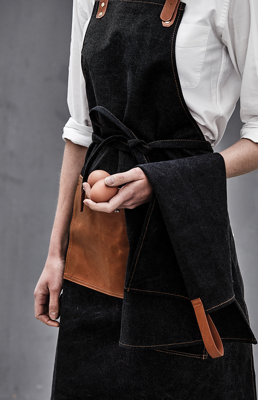 Delantal robusto en lona lavada a la piedra de 500 g/m² con detalles en PU. Un delantal que envejece con dignidad.