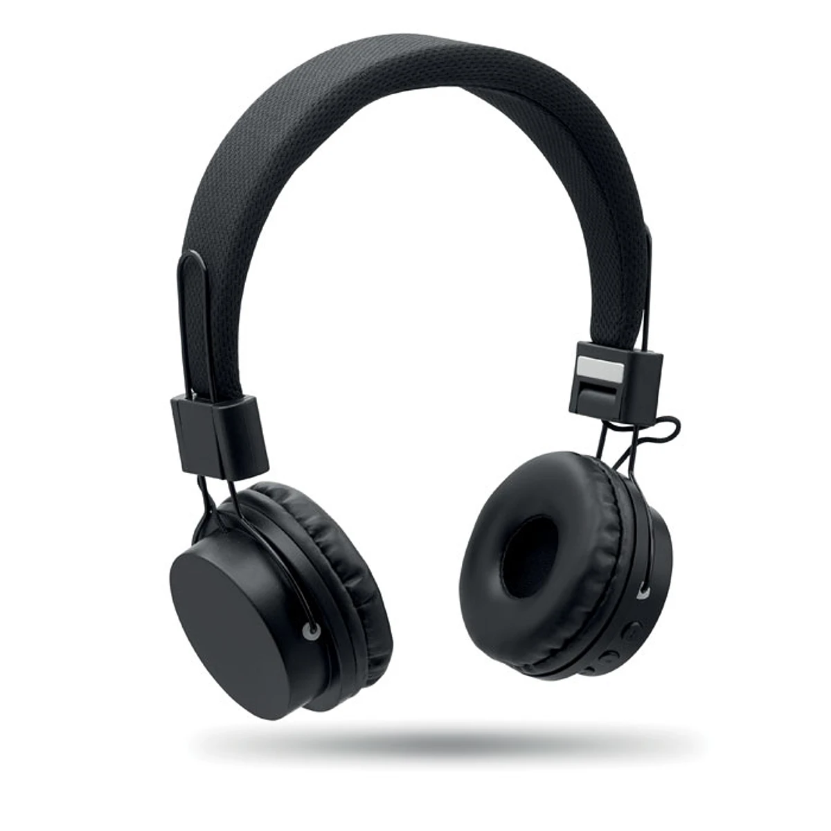 Auriculares inalámbricos plegables 5.3 en ABS. Función manos libres y micrófono incorporado. Tiempo reproducción aprox. 9 horas. Incluye cable de carga micro USB. Batería recargable de Li-ION 400 mAh. Alcance: 10 m.
