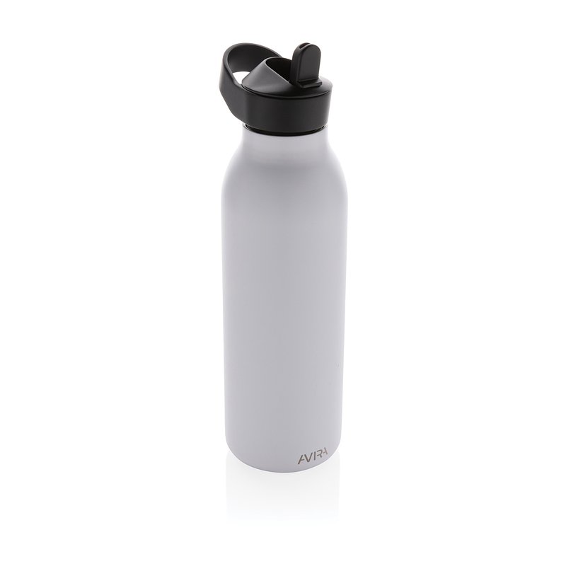 The Ara RCS recycled stainless steel vacuum bottle is designed with an innovative flip top and straw, making it perfect for sports or activities on the move. Its double-wall construction, made from recycled stainless steel, keeps water cold for up to 20 hours. This bottle fits most standard car cup holders, allowing you to take it wherever you go. Made with RCS (Recycled Claim Standard) certified recycled materials, ensuring a fully certified recycled materials supply chain. With a total recycled content of 96% based on the total weight of the item, it is eco-friendly and does not contain BPA. With a capacity of 500 ml and FSC® certified kraft packaging, you can even reuse the box as a phone holder, pencil holder or planter!