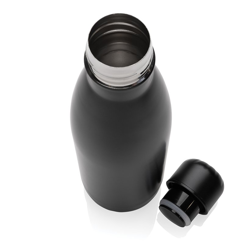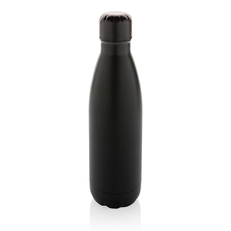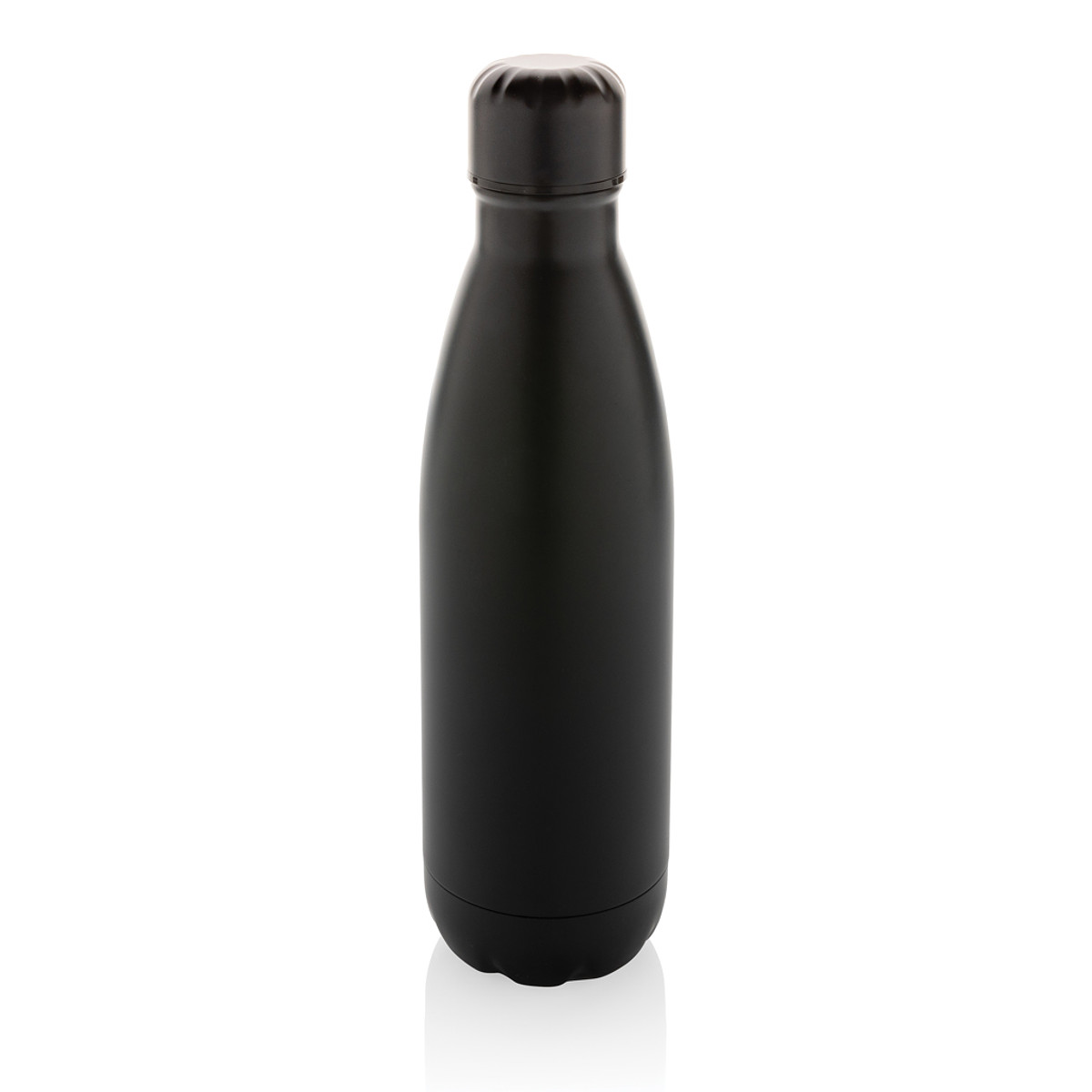 Elevate your daily water intake with this single-wall stainless steel bottle. The bottle is suitable for cold beverages only. With a base that fits in most cup holders, this stylish water bottle will keep you hydrated wherever you are. Made with RCS (Recycled Claim Standard) certified recycled materials. The RCS certification guarantees a fully certified supply chain of recycled materials. Total recycled content: 84% based on the total weight of the item. BPA free. Capacity 500ml. Includes FSC® certified kraft packaging.