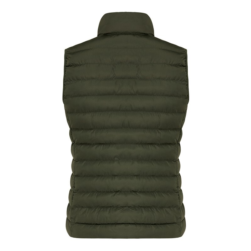Medium fit women's vest, 100% made from recycled polyester. Fully padded with 100% recycled polyester bead filling. It has a reversed zipper on the front and practical zippered pockets on the side seams. All zippers have additional matching color pullers for a refined look. The armholes have elastic trims and all the interior seams have a clean finish with recycled trims. Fluor/PFAS free water repellent impregnation. The use of genuine recycled fabric materials and environment impact statements are guaranteed through the use of the disruptive physical tracer AWARE™ and blockchain technology. By scanning the QR code, you'll gain access to an exclusive digital passport. 2% of the revenue from each product sold will be donated to Water.org. This product is OEKO-TEX® STANDARD 100 certified. The vest is also available for men.