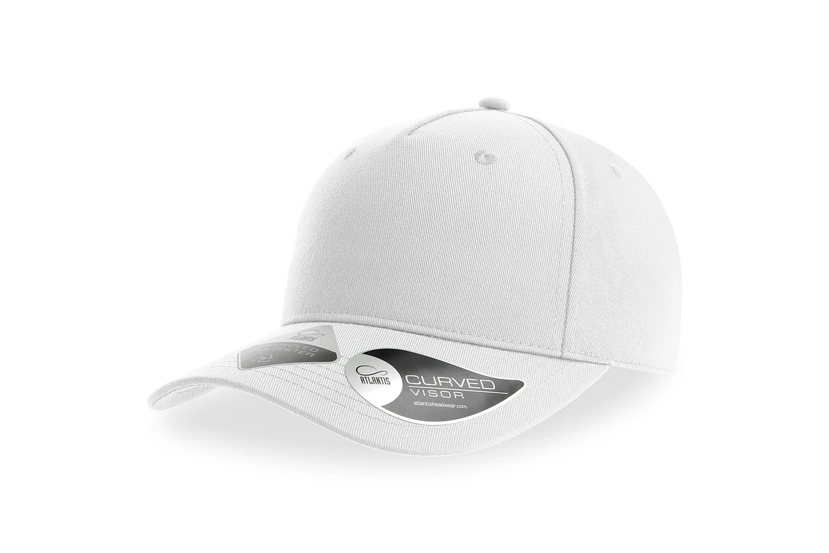 5-panel structured baseball cap made of 100% recycled polyester with curved visor and full stitching. Ample space in the crown for custom patches and hook and loop closure at the back. Fine sun protection for summer hiking and outdoor living.