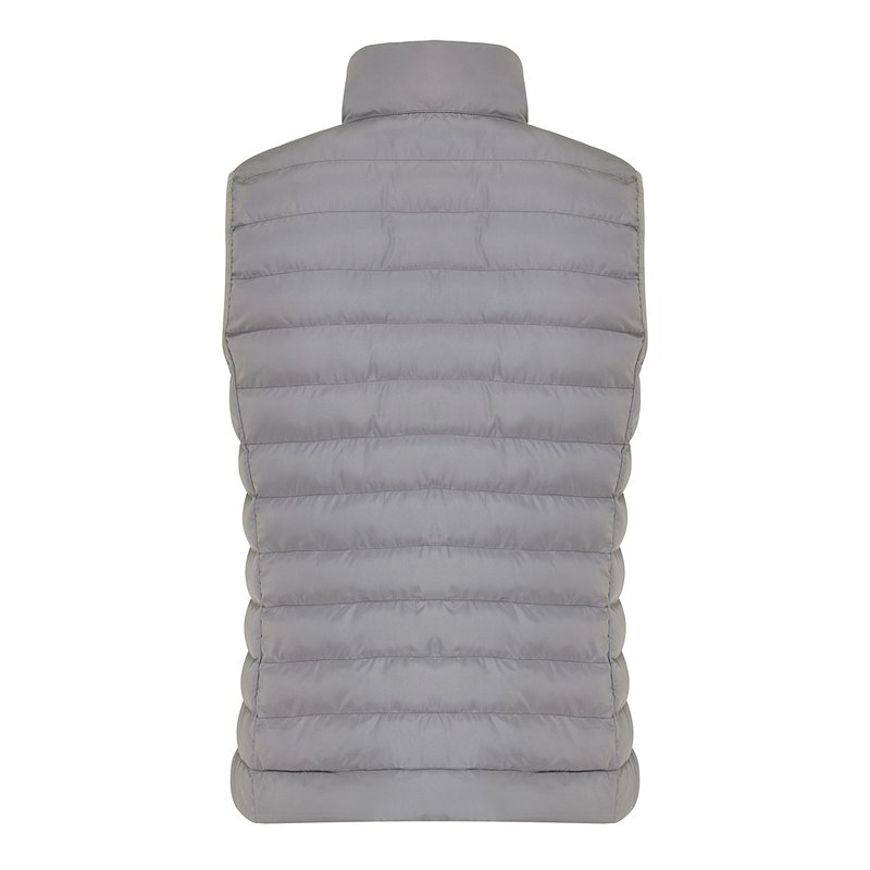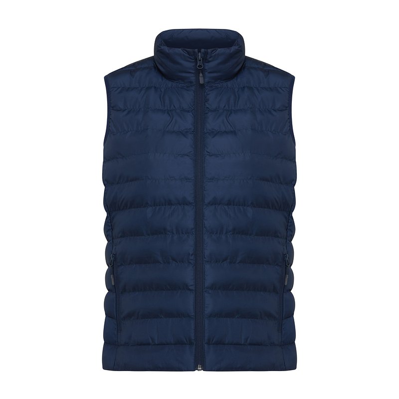 Medium fit women's vest, 100% made from recycled polyester. Fully padded with 100% recycled polyester bead filling. It has a reversed zipper on the front and practical zippered pockets on the side seams. All zippers have additional matching color pullers for a refined look. The armholes have elastic trims and all the interior seams have a clean finish with recycled trims. Fluor/PFAS free water repellent impregnation. The use of genuine recycled fabric materials and environment impact statements are guaranteed through the use of the disruptive physical tracer AWARE™ and blockchain technology. By scanning the QR code, you'll gain access to an exclusive digital passport. 2% of the revenue from each product sold will be donated to Water.org. This product is OEKO-TEX® STANDARD 100 certified. The vest is also available for men.
