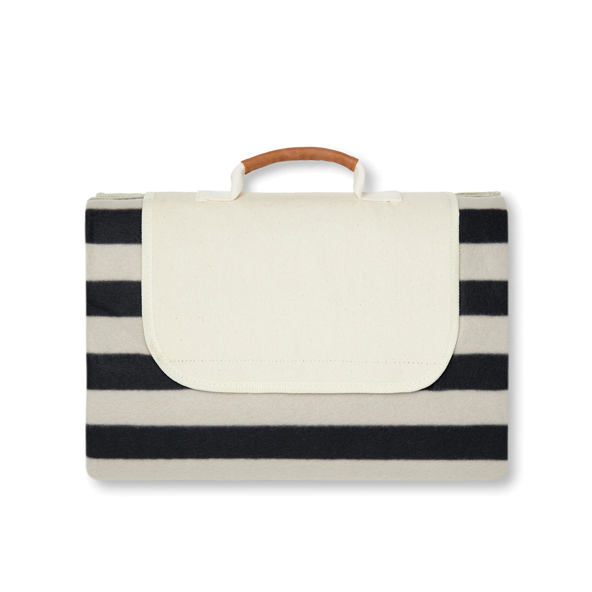 Picnic blanket in soft fleece with cotton canvas and synthetic leather details. The fleece lining is made from 100% GRS-certified RPET. The GRS certification ensures a fully certified supply chain of the recycled materials. The back is made of PEVA, which repels water. The intelligent composition makes it easy to fold and carry with you. Total recycled content: 58% based on the total weight of the item.