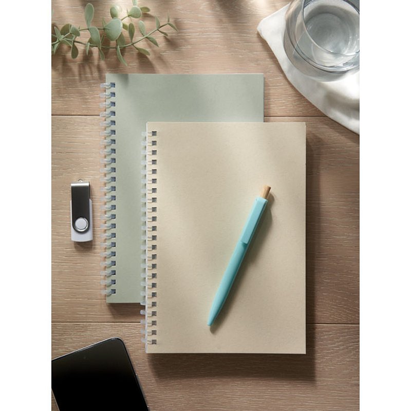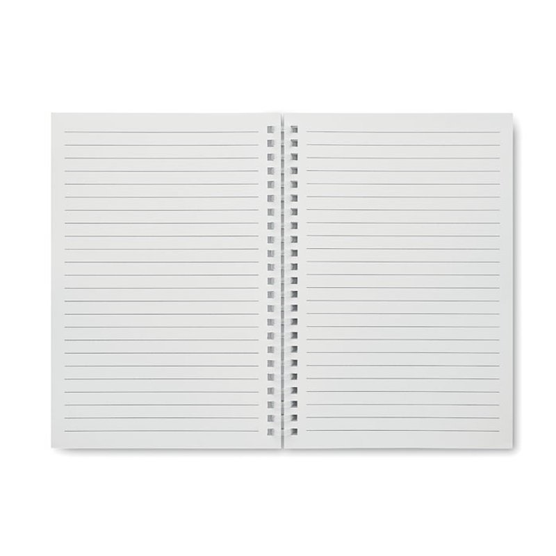 Libreta A5 de anillas con tapa de cartón reciclado. 160 páginas de papel rayado reciclado (80 hojas)