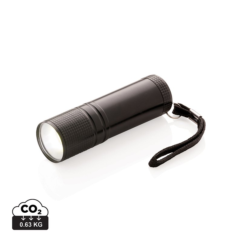 Super bright COB pocket flashlight. This COB flashlight is much brighter than regular LED flashlights and consumes less energy so it can be used up to 30% more with the same battery. Durable aluminum body and hanging handle. Includes 3 AAA batteries for direct use.
