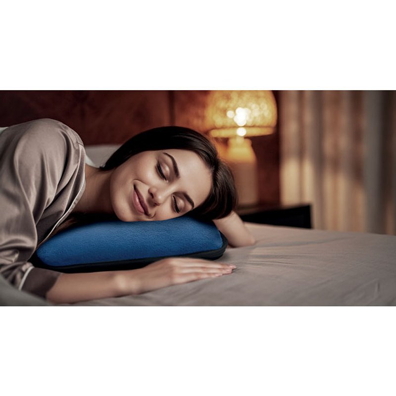 Set 2 en 1 de manta y/o almohada de viaje de franela de 220 gr/m². El artículo se puede plegar. Incluye asa y tira para trolley RPET 600D.