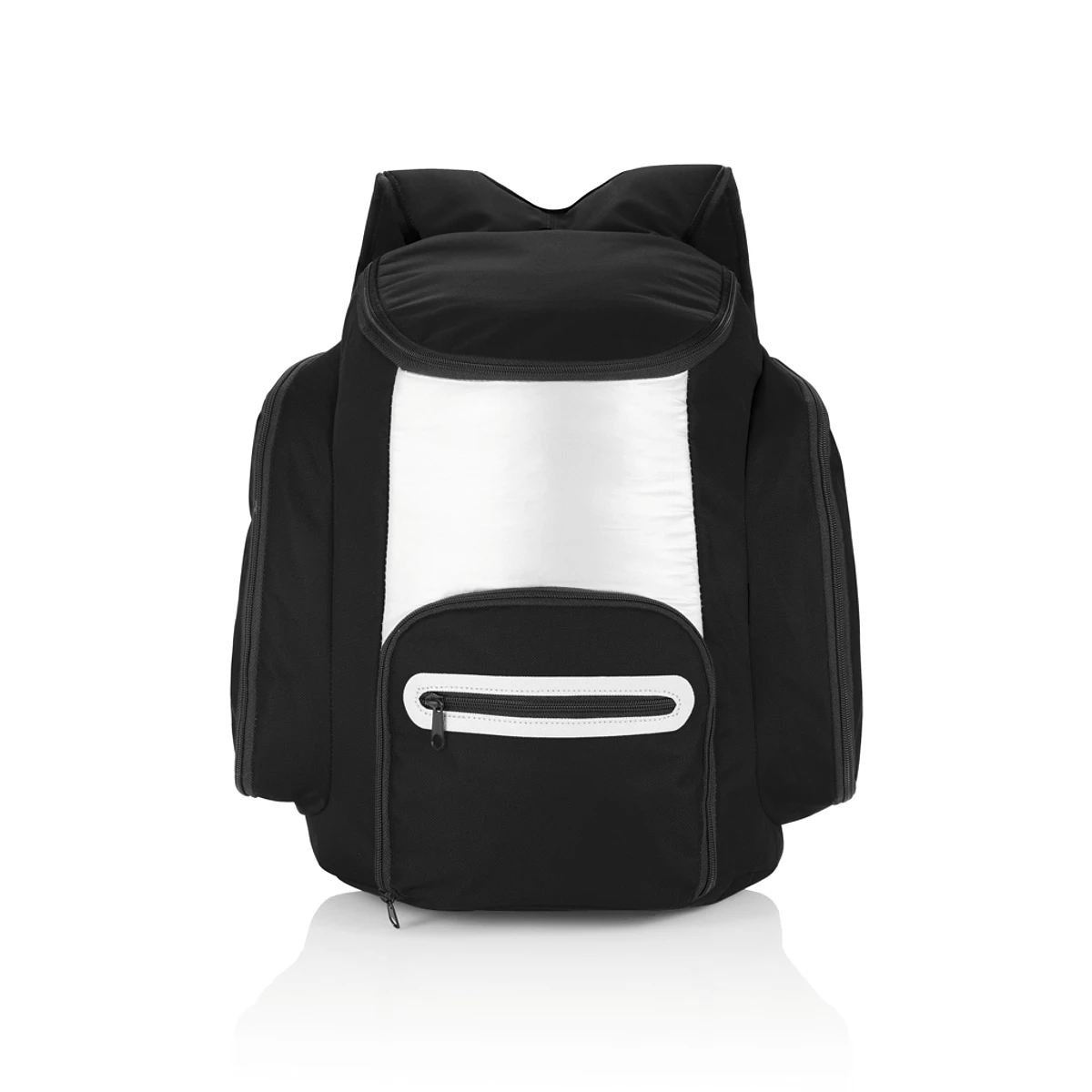 600D cooler backpack with an internal thermal compartment to keep both drinks and food cold. It has an additional front pocket to store other belongings.
