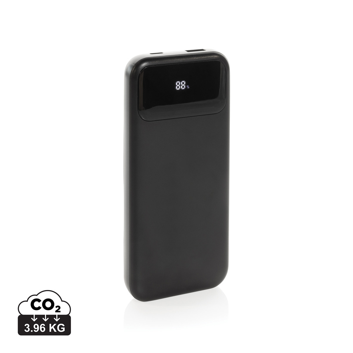 Powerbank de carga rápida con cables integrados y pantalla. El powerbank de 10,000 mAh viene con un tipo C integrado y un cable Lightning de Apple integrado para que puedas conectarlo fácilmente a tu dispositivo. Con un puerto tipo C adicional y un puerto USB A para conectar tu propio cable de carga. Cuando está completamente cargado, puedes recargar tu teléfono móvil hasta cuatro veces. Batería de polímero de litio de grado A de 10.000 mAh de larga duración. Fabricado con ABS reciclado y TPE reciclado. Contenido reciclado total: 21% en base al peso total del artículo. La certificación RCS garantiza una cadena de suministro completamente certificada de los materiales reciclados. Con pantalla digital para mostrar la energía restante. Empacado en embalaje kraft FSC®. Libre de PVC. Salida USB-A 5V⎓3.0A, 9V⎓2A, 12V⎓1.5A; Salida USB-C 5 V⎓3,0 A, 9 V⎓2,22 A, 12 V⎓1,67; Entrada tipo C 5 V⎓3,0 A, 9 V⎓2 A, 12 V⎓1,5 A; Cable USB-C integrado Salida: 5 V⎓3 A 9 V⎓2 A 12 V⎓ 1,5 A.