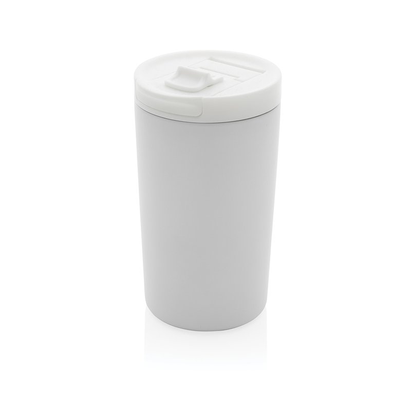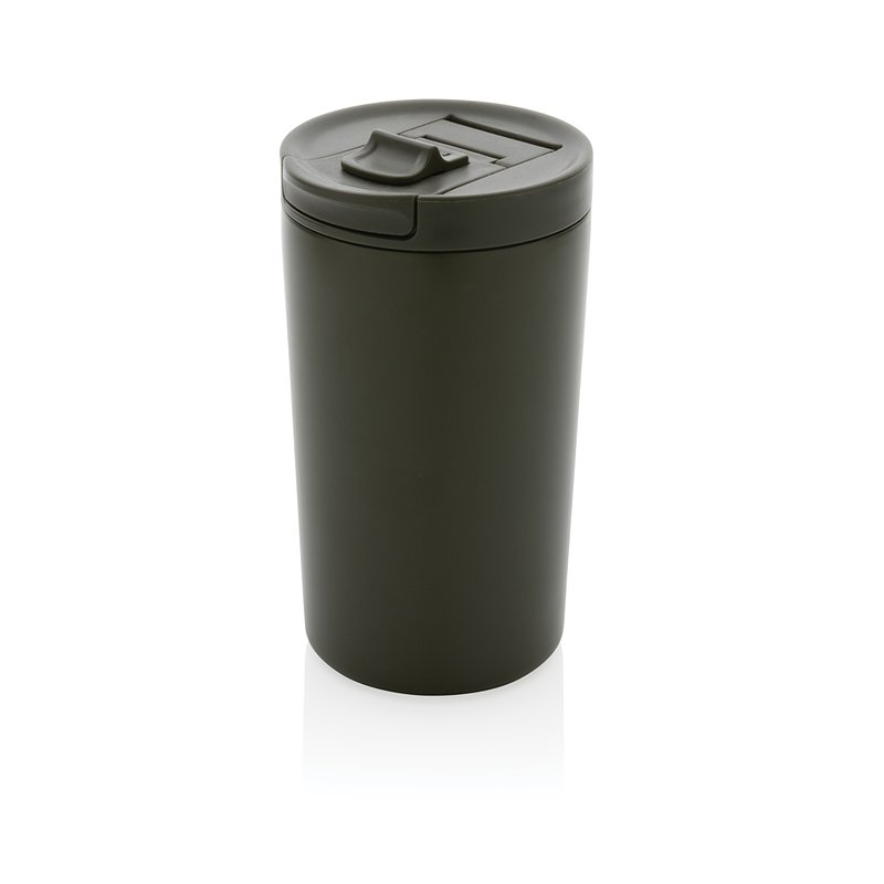 This double-wall vacuum insulated, leak-proof lock mug is the perfect size for your drink. Its sealed flip-top leakproof lid is designed for easy open/close and use on the go. The vacuum insulation keeps drinks hot for up to 5 hours and cold for up to 15 hours. Made with RCS (Recycled Claim Standard) certified recycled materials. The RCS certification ensures a fully certified supply chain of recycled materials. Total recycled content: 80% based on the total weight of the item. Capacity 300ml. BPA free and hand wash only.