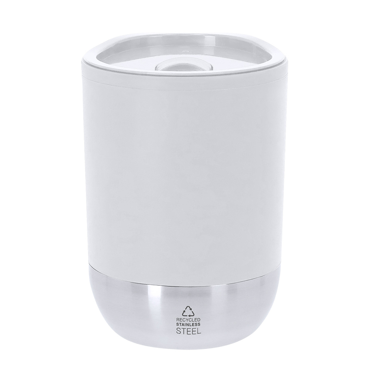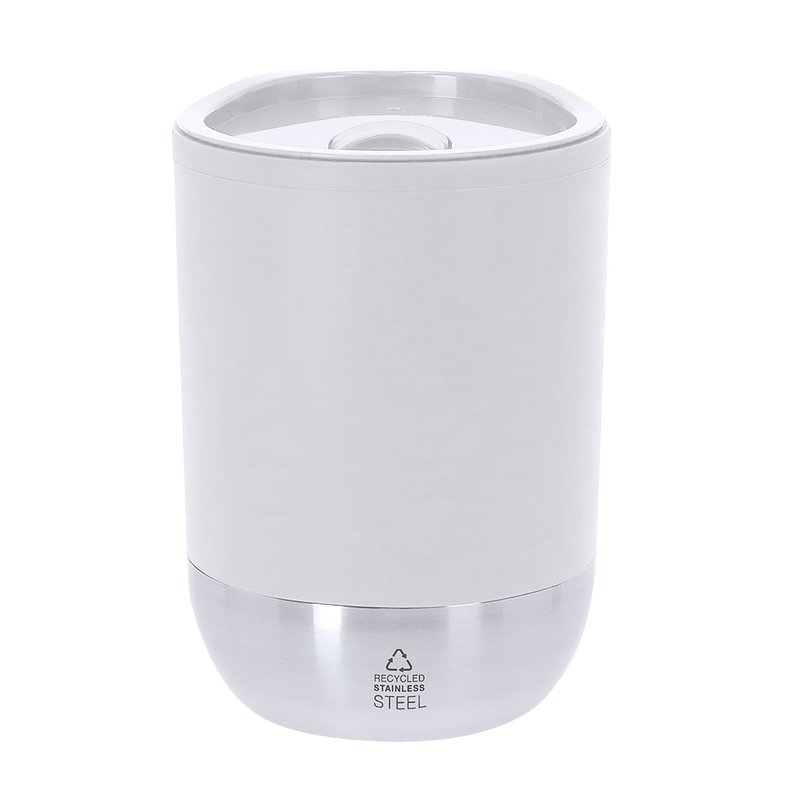 290 ml capacity thermal cup. Made from durable double-walled Recycled PP, combined with a base in Recycled Stainless Steel. Lid with easy-open dispenser, BPA-free. It's ideal for keeping on your desk, table or any surface where you can comfortably enjoy your favorite drink. With Food Grade certification, ensuring safety when food comes into contact with the material used to manufacture the product. Distinctive Recycled Stainless Steel label. Recycled PP is a recycled and highly recyclable plastic, very resistant and suitable for many applications. Steel is one of the most in-demand materials and can be found almost everywhere, from everyday products to large constructions. With countless properties, among which durability and its high degree of reuse stand out, making it a highly valued alternative in sustainability solutions. Properly treated, it can yield new infinitely usable resources.