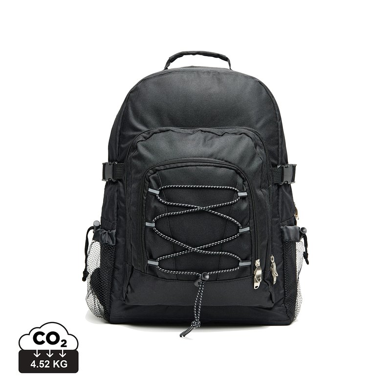 Spacious backpack with cooling function and numerous compartments. 600D Polyester.
