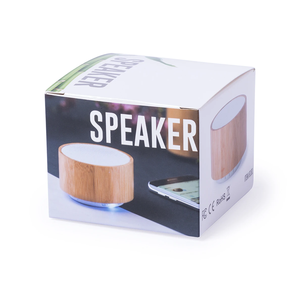 Compacto altavoz con cuerpo en bambú y conexión Bluetooth®. Con 3W de potencia, función manos libres, radio FM, una ranura para tarjetas mini SD y base antideslizante. Recargable mediante cable USB -incluido- y presentado en una atractiva caja de diseño.