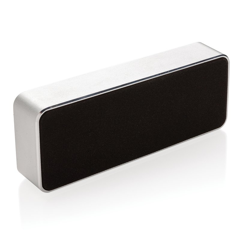 Altavoz inalámbrico de lujo de 3W que combina aluminio, tela y material de bambú en un solo producto. El altavoz inalámbrico utiliza BT 5.0 para una conexión suave de hasta 10 metros. Tiempo de reproducción de hasta 4 horas con una carga y recarga en 1,5 horas. Con subwoofer incorporado para un rendimiento de graves mejorado. Incluye cable micro usb TPE sin PVC para recargar. Diseño registrado®
