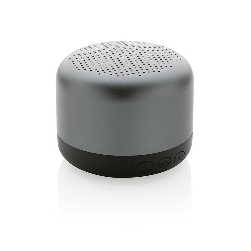Altavoz inalámbrico de 5W fabricado con aluminio reciclado certificado RCS (Recycled Claim Standard) y ABS. Contenido reciclado total: 35% basado en el peso total del artículo. La certificación RCS garantiza una cadena de suministro completamente certificada de los materiales reciclados. El aluminio no pierde sus características en el proceso de reciclaje y puede reciclarse infinitamente. Incluye cable de carga tipo C reciclado fabricado con aluminio reciclado certificado RCS, TPE y PET. Presentado en envase mixto FSC®. La batería de 600 mah permite un tiempo de reproducción de hasta 4 horas y se puede recargar por completo en 2 horas. Con BT 5.0 para una conexión fluida hasta 10 metros.
