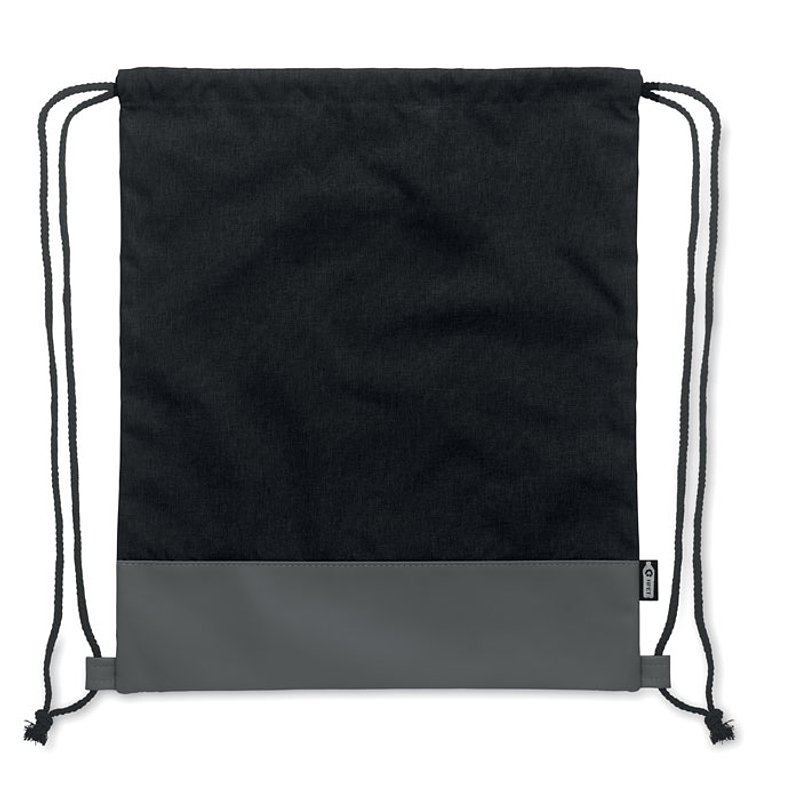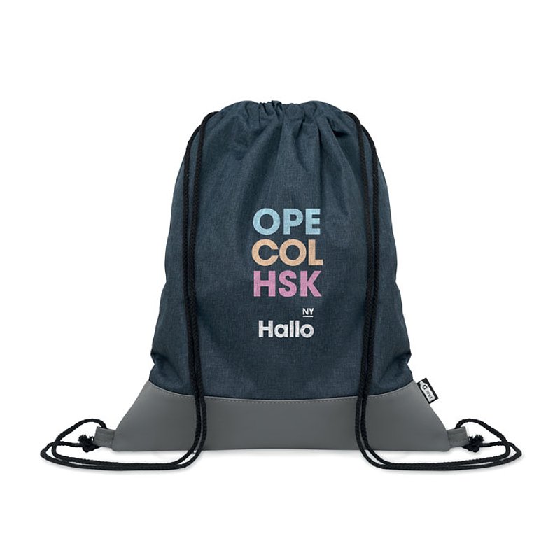 Bolsa de cuerdas de poliéster RPET 300D de 2 tonos con suave detalle de PU y cordón de polialgodón.