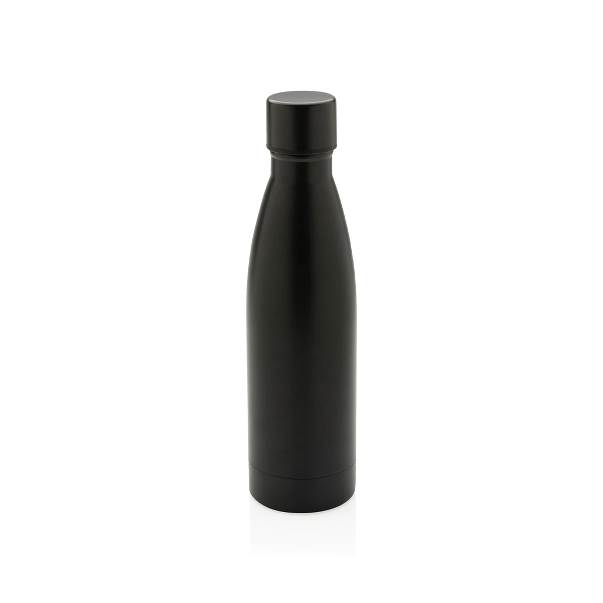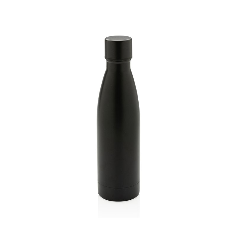 Esta botella al vacío de acero inoxidable reciclado RCS está diseñada para disfrutar de tus bebidas durante mucho tiempo! La construcción al vacío de acero inoxidable reciclado de doble pared mantiene las bebidas frías durante 15 horas o calientes durante 5 horas. Esta botella se adapta a la mayoría de los portavasos estándar para automóviles, por lo que puedes llevarlas a cualquier parte. Fabricado con materiales reciclados certificados RCS (Recycled Claim Standard). La certificación RCS garantiza una cadena de suministro completamente certificada de los materiales reciclados. Contenido reciclado total: 93% basado en el peso total del artículo. Sin BPA. Capacidad 500ml. Incluye embalaje kraft certificado FSC®.