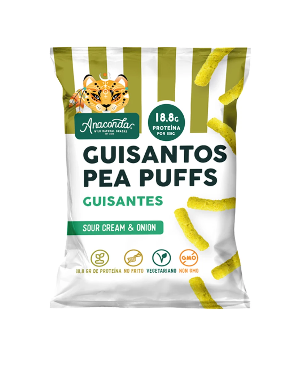 Gusanitos hechos con harina de guisante (75%) y sabor "sour cream" ideales para aperitivos y compartir. Un snack real, 100% natural y sano. ¿Para qué añadir más cuando ya es perfecto?