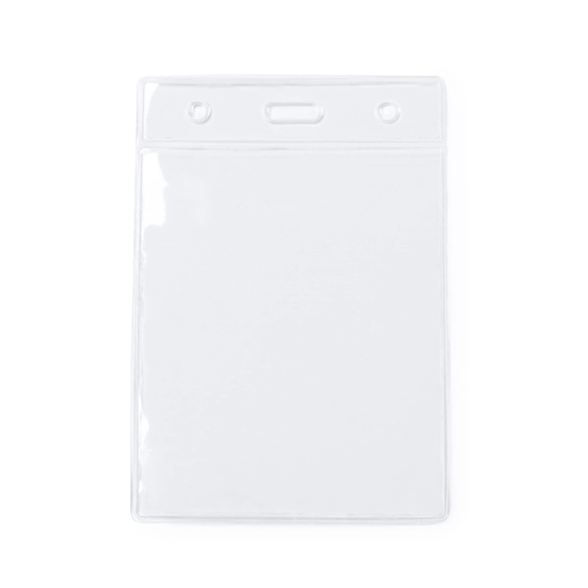 Identificador transparente de PVC de diseño vertical.