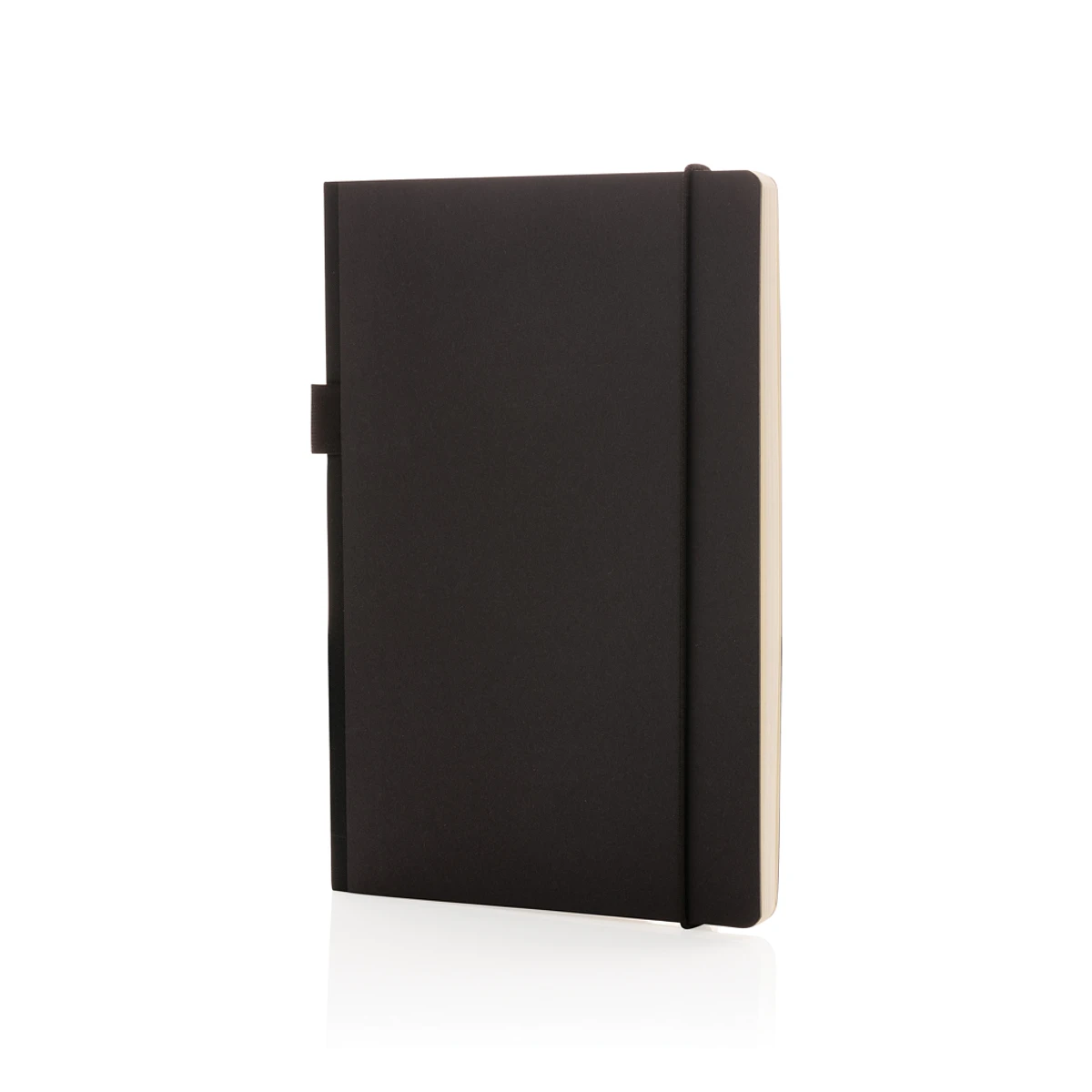 Esta libreta de tapa dura de lujo FSC® cuenta con una cubierta de papel certificado por FSC con cinta elástica para bolígrafo a juego con detalles en negro y un marcador de página de cinta. En la parte trasera encontrarás un bolsillo para guardar tus papeles/documentos. 80 hojas/160 páginas de papel rayado crema certificado FSC®.