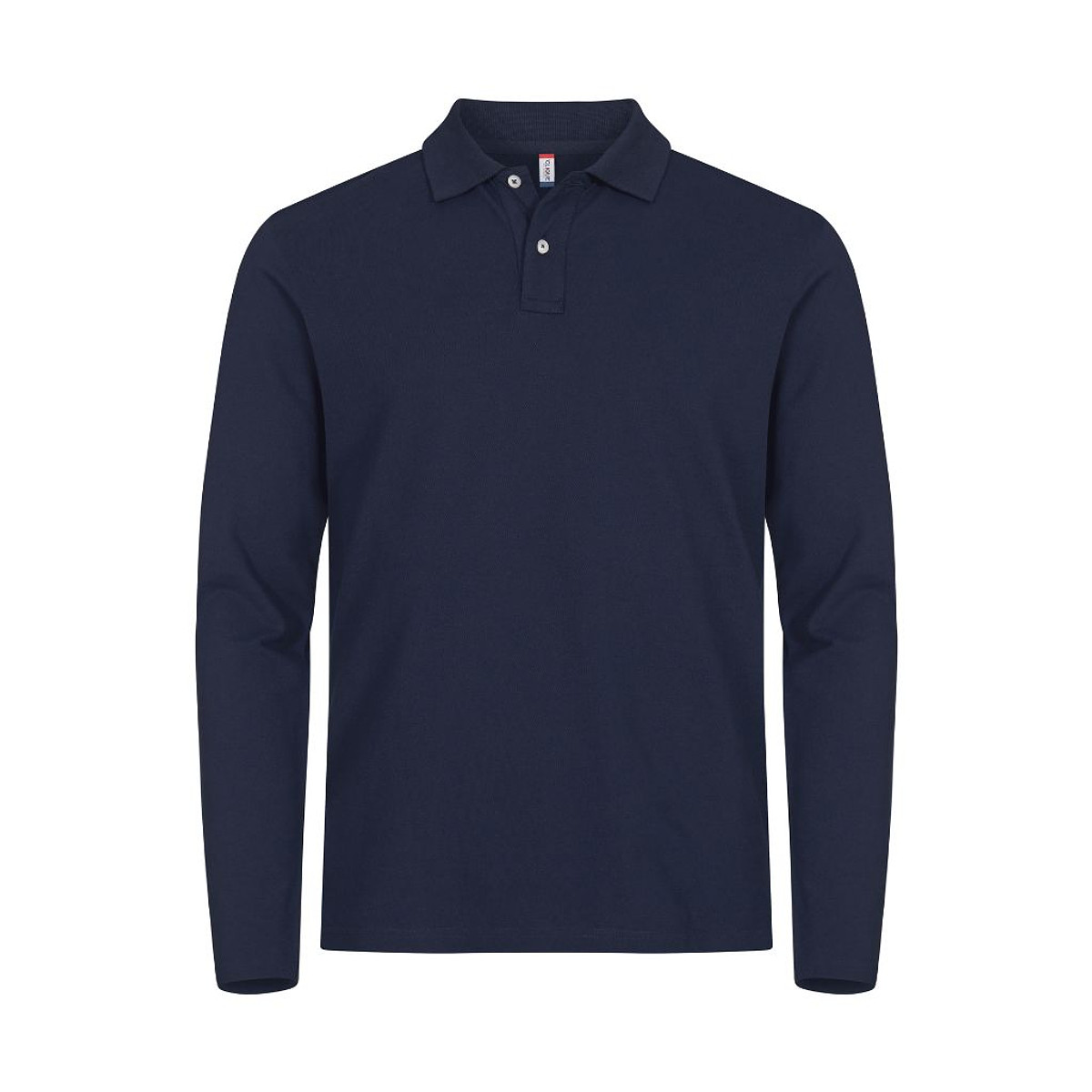 Polo de manga larga de alta calidad con una buena elasticidad. Este polo sin puños presenta 2 botones con aspecto perlado. Cinta de espiga en el cuello y una cruz bartac en la abertura lateral. De fácil reetiquetado. La prenda está preencogida y con tratamiento enzimático.