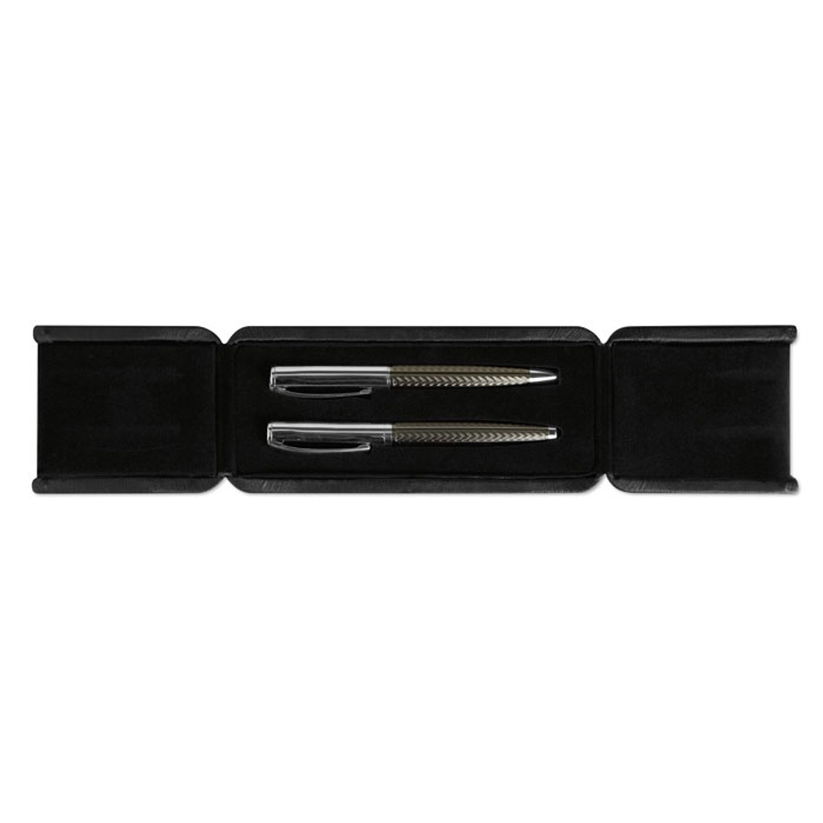 Set de bolígrafo giratorio y roller en caja de regalo. Tinta azul.