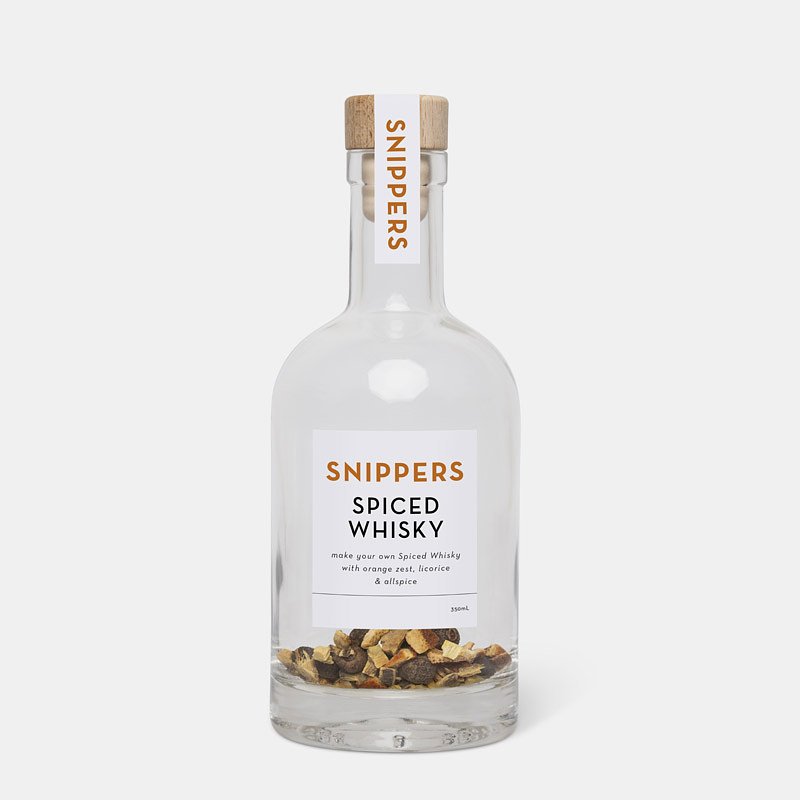 Colección SNIPPERS Botanicals. - La botella está rellena con una selección de especias: ralladura de naranja, regaliz y pimienta de Jamaica. - Crearás tu propio Whisky Especiado en 24h. - 3 pasos muy sencillos: 1. Añade Whisky 2. Espera 24h. 3. Filtra y disfruta. Capacidad 350ml.