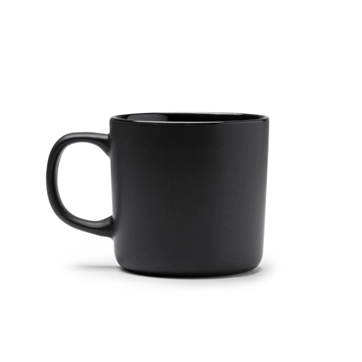 Taza compacta de cerámica con acabado mate. Capacidad 300 ml. La parte interior es del mismo color que el cuerpo exterior, al igual que el asa. Un diseño uniforme y elegante, a la vez que práctico.