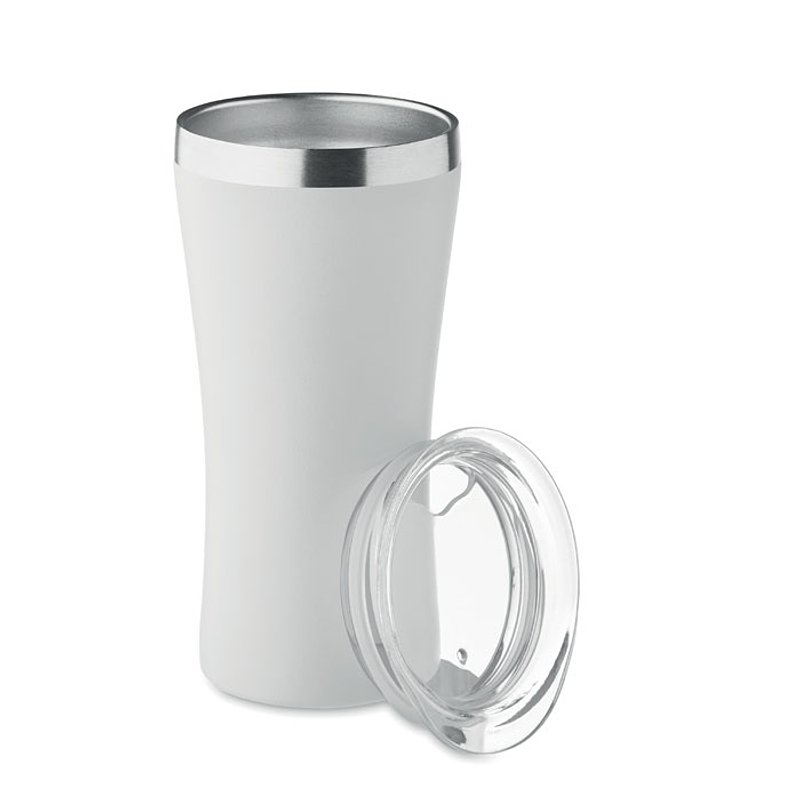 Vaso pequeño de doble pared con aislamiento al vacío de acero inoxidable reciclado (90% de acero inoxidable reciclado y 10% de acero inoxidable) y tapa con orificio para beber de PP transparente. Capacidad: 160 ml.