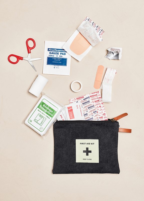 Un botiquín de primeros auxilios de nuestra popular serie Asado. La bolsa de tela con cremallera contiene todo lo necesario en caso de pequeños accidentes como tiritas, tijeras, vendas, etc. Se presenta en una bolsa de plástico.