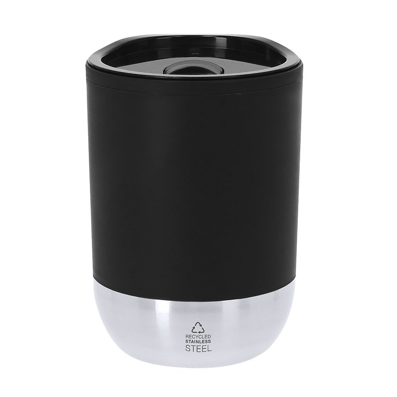 Vaso térmico de 290 ml de capacidad. Fabricado en resistente PP Reciclado de doble pared en combinación con base en Acero Inox Reciclado. Tapa con dosificador de fácil apertura, libre de BPA. Es ideal para tener en tu escritorio, mesa o en cualquier superficie donde disfrutar tranquilamente de tu bebida favorita. Con certificación Food Grade, garantizando la seguridad cuando los alimentos entran en contacto con el material usado para fabricar el producto. Con distintivo de Acero Inox Reciclado. El PP reciclado es un plástico reciclado y altamente reciclable, de gran resistencia y apto para multitud de aplicaciones.El acero es uno de los materiales más demandados y que puede encontrarse casi en todas partes, desde productos de uso diario a grandes construcciones. Con innumerables propiedades, entre las que cabe destacar la durabilidad y su alto grado de reutilización, convirtiéndolo en una alternativa muy valorada en soluciones de sostenibilidad. Debidamente tratado, permite obtener nuevos recursos de infinita utilización.