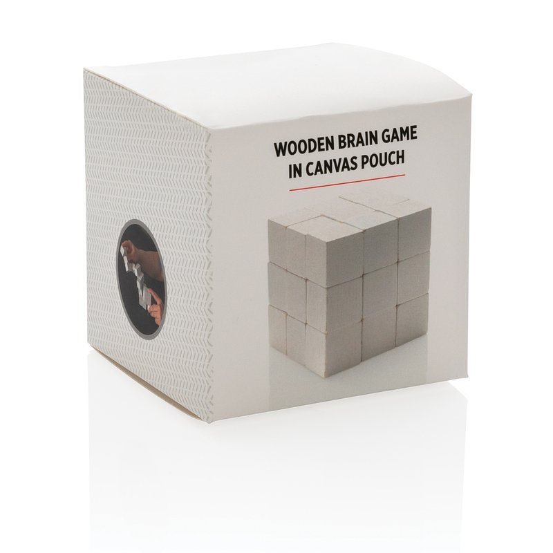 Ponte a prueba con este juego mental de madera! Este hermoso e intrigante rompecabezas está hecho de piezas de madera entrelazadas que forman un cubo. Soltar el cubo es fácil, pero volver a armarlo es una historia diferente!Es un placer jugar con el rompecabezas y asegura un poco de diversión para estimular el cerebro. El rompecabezas viene en una bolsa de lona para guardarlo fácilmente.