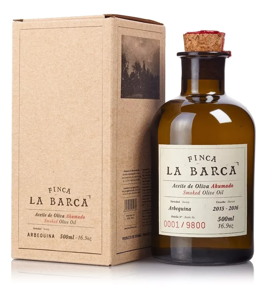 El Aceite Ahumado "Finca La Barca" es un Aceite de Oliva elaborado con la variedad de aceituna arbequina. Está ahumado siguiendo el método tradicional de la región extremeña de "La Vera", con leña de encina, en un proceso de más de 15 días. El humo le otorga al Aceite unos matices ahumados que le transportaran a una nueva dimensión de sabor y aroma.