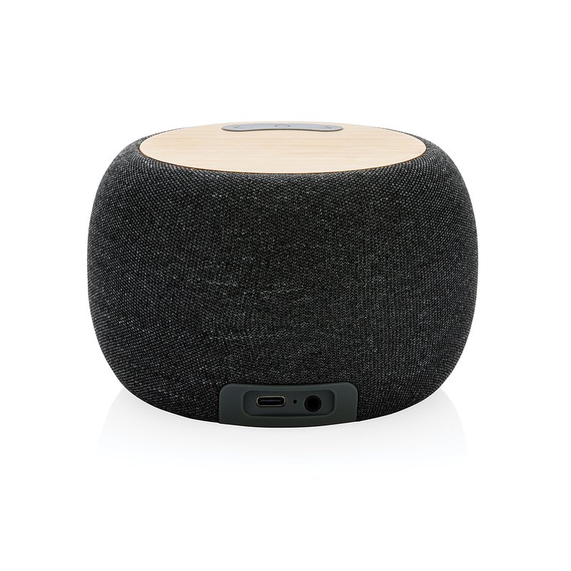 Altavoz inalámbrico de 5W con sonido nítido. Fabricado con FSC® 100 % bambú, ABS y PET reciclados con certificación RCS (Recycled Claim Standard). Contenido reciclado total: 51% basado en el peso total del artículo. La certificación RCS garantiza una cadena de suministro completamente certificada de los materiales reciclados. El altavoz está equipado con una batería de 1200 mAh para garantizar hasta 6 horas de tiempo de reproducción y BT5.3 para una conexión fluida y un sonido claro. Rango de conexión de hasta 10 metros. Con micrófono para contestar llamadas. Presentado en caja kraft mixta FSC®. Incluye cable de carga TPE reciclado certificado GRS. Artículo y accesorios 100% libres de PVC.