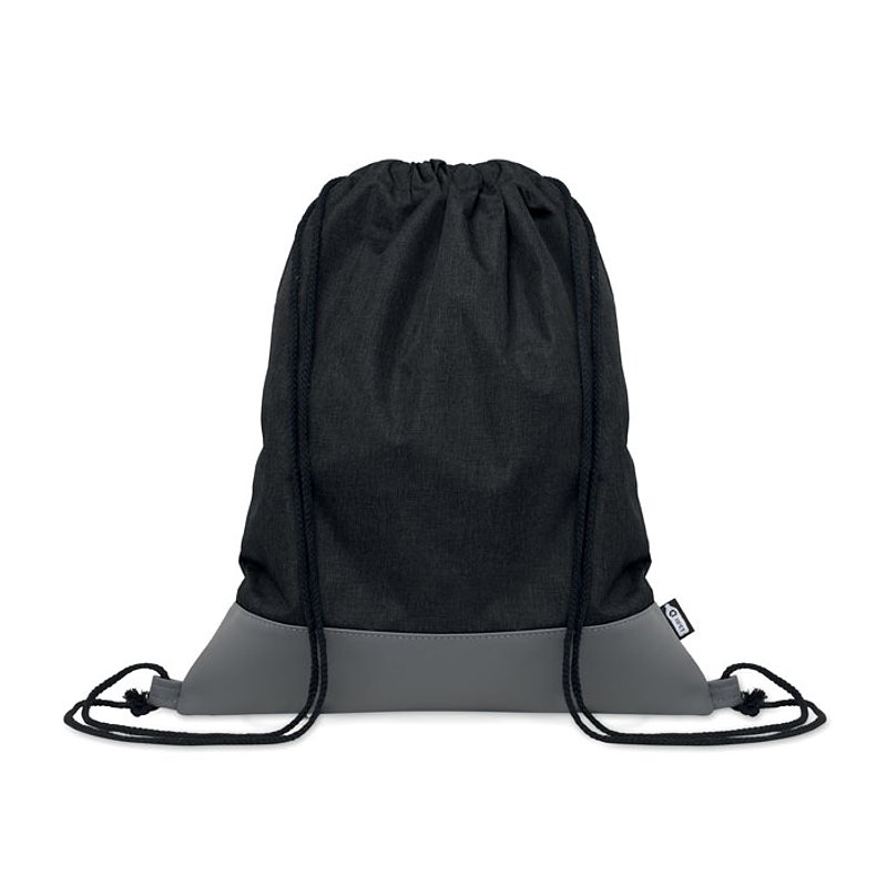 Bolsa de cuerdas de poliéster RPET 300D de 2 tonos con suave detalle de PU y cordón de polialgodón.